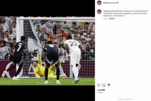 赛后库尔图瓦也在个人社媒发文致歉,写道:“没能带领球队晋级我们感到非常痛苦,感谢球迷们对我们的支持和信任,我们会再次回来!”