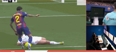 第18分钟,坎塞洛禁区内变向过人,击中何塞-安赫尔的手臂,裁判回看VAR再度判罚点球。